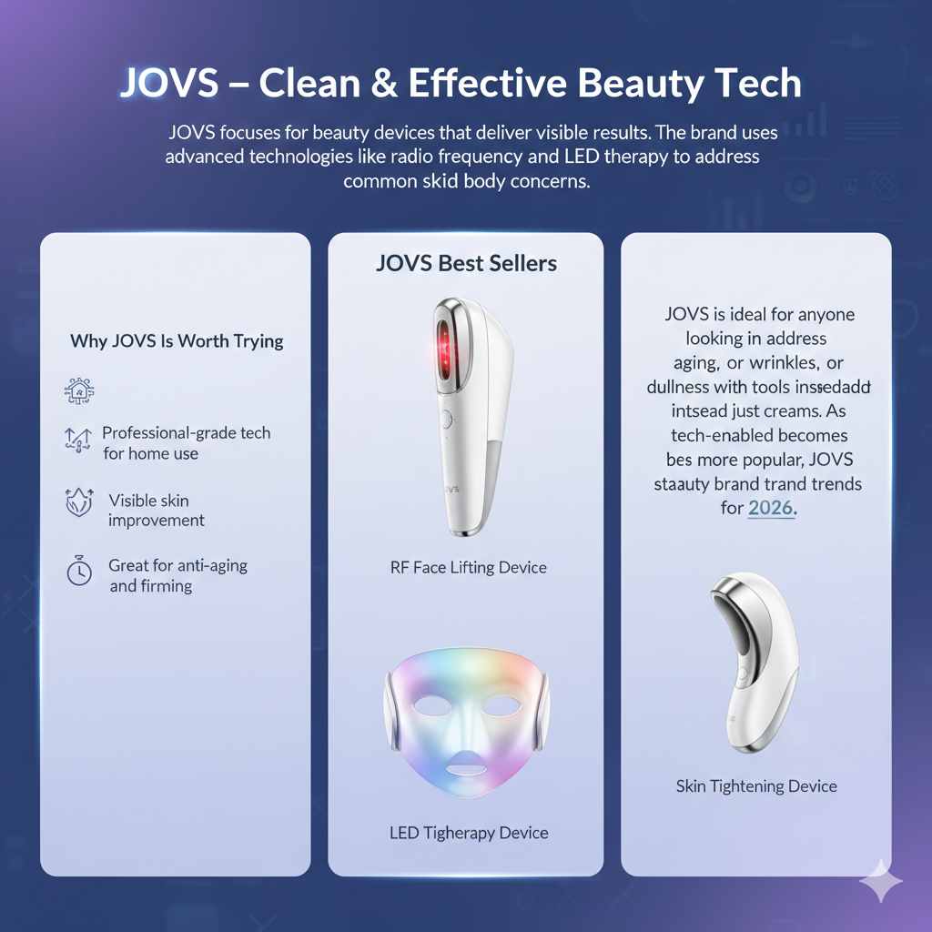 JOVS is ideal for anyone looking to address aging, wrinkles, or dullness with tools instead of just creams. As tech-enabled beauty becomes more popular, JOVS stands out in the beauty brand trends for 2026.